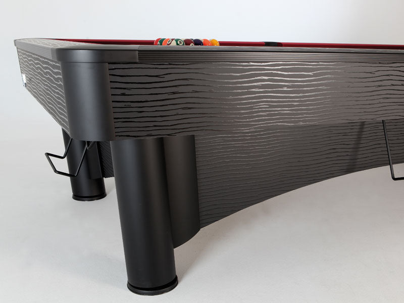 Its rails are completely flat for maximum sporting demands. A solid structure, natural rubber cushions and top quality cloth make it the international leader in professional pool tables.